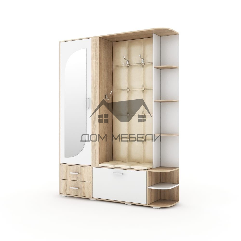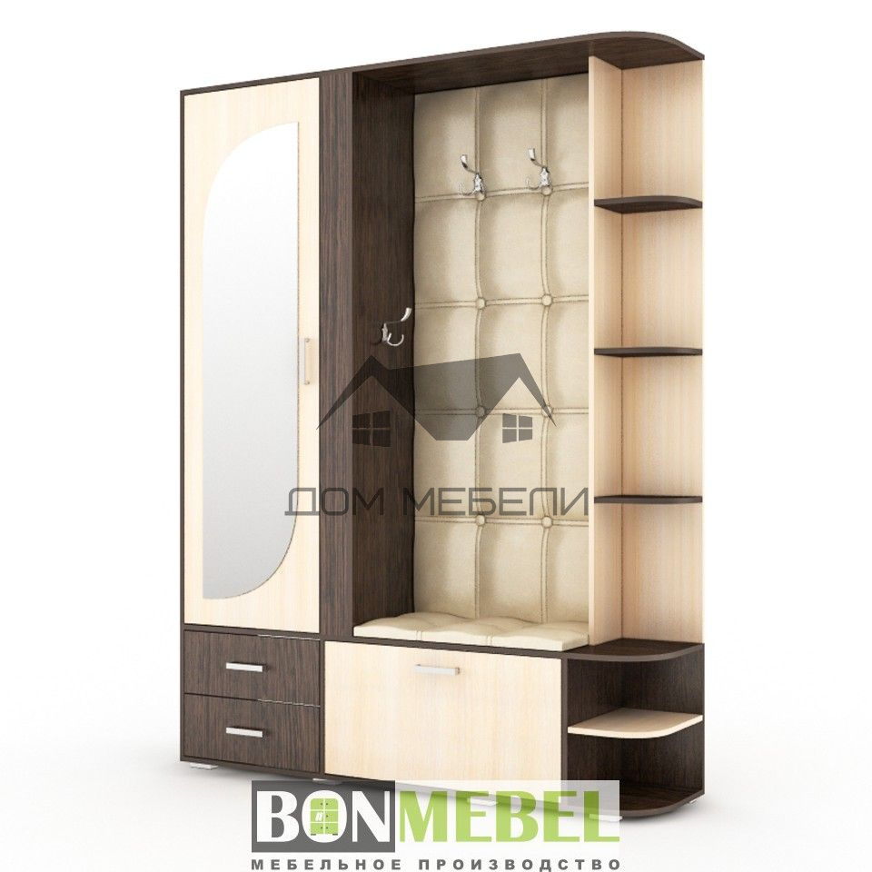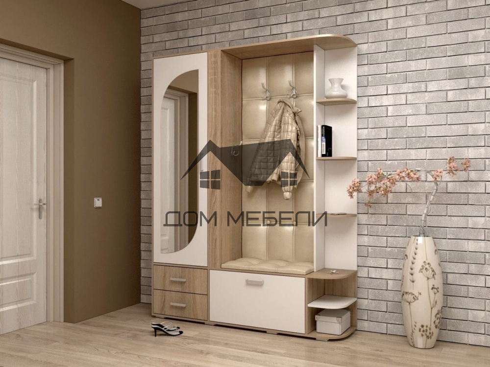 Данная модель прихожей позволит создать оптимальную систему хранения. Стильная и элегантная вставка из искусственной кожи с имитацией каретной стяжки, и оригинальное зеркало на фасаде подарят вашему интерьеру неповторимый шарм.