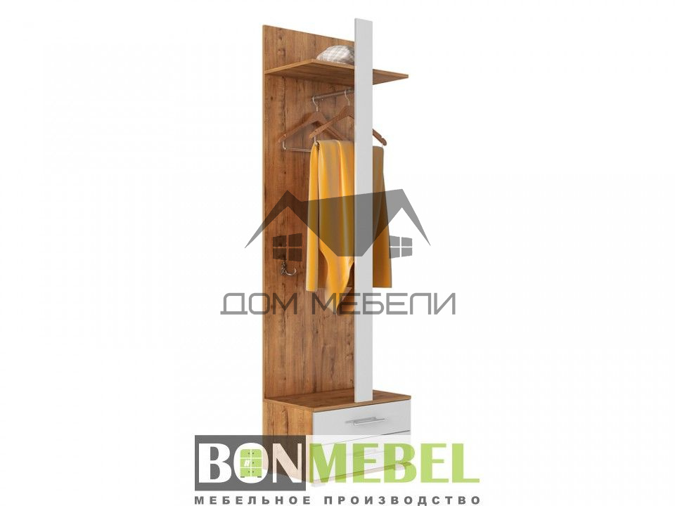 Прихожая Сан Марино отлично дополняет систему хранения в коридоре. Модель позволяет аккуратно повесить на плечики верхнюю одежду, а на полке и крючке расположить сумки, головные уборы и аксессуары. В выдвижных ящиках удобно хранить средства по уходу за обувью и другие полезные мелочи.