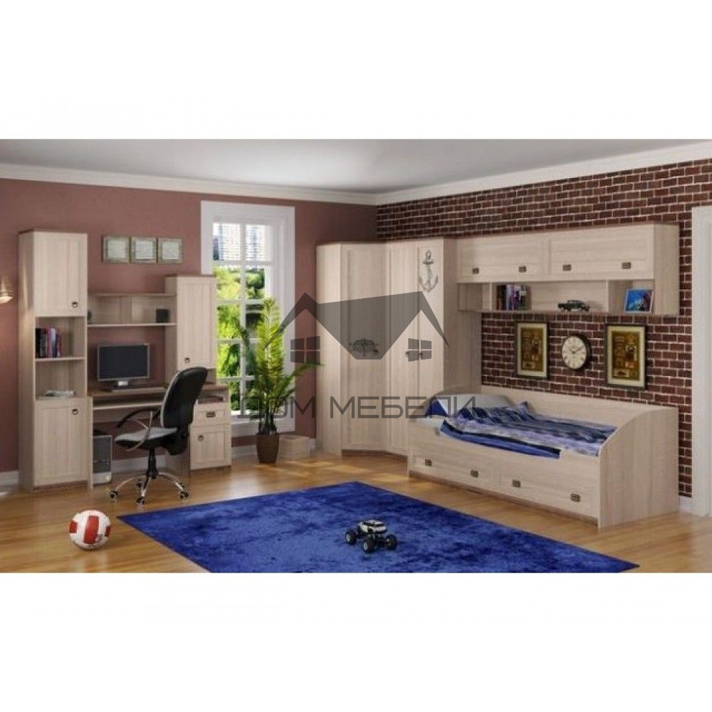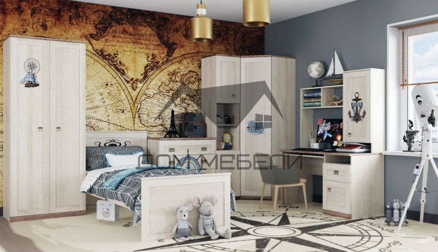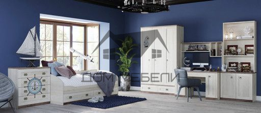Боцман - это комната для подростка, мечтающего о приключениях и покорении морских просторов. Коллекция выполнена в классическом сочетании декоров. Спокойный ЛДСП Дуб Сонома дополнен контрастным ЛДСП Дуб Сакраменто. Фасады декорированы планкой из МДФ и нанесен рисунок с помощью УФ печати.