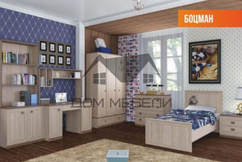 В модульную спальню Боцман входят: диван-кровати, комоды, стеллажи, столы компьютерные, полки, кровати, шкафы-пеналы, угловые шкафы и шкафы для одежды.