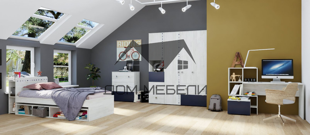 Детская модульная спальня Поло Синий геометрия