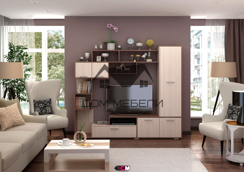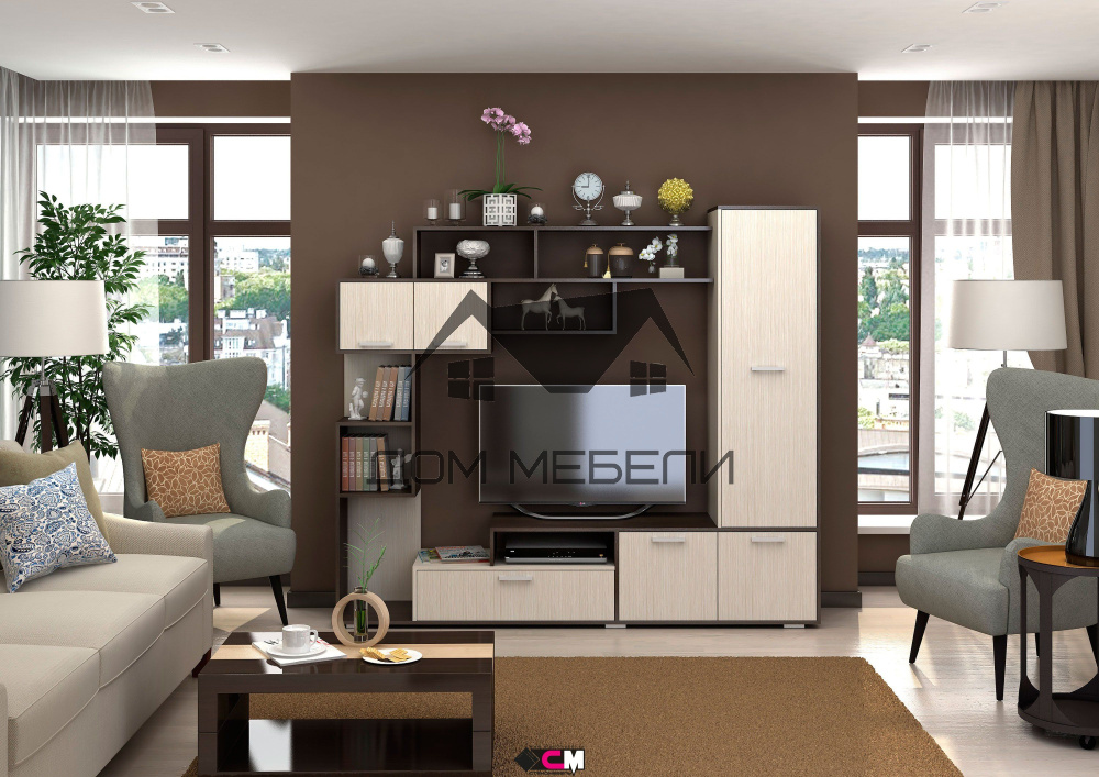 Гостиная производится из ЛДСП в размере (Ш*В*ГЛ) 2100х1820х416 мм,