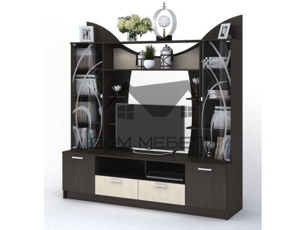 Центральная секция от гостиной "Ольбия" станет хорошим помощником в оформлении практичной и стильной гостиной комнаты. Внешнее оформление делает композицию максимально привлекательной.