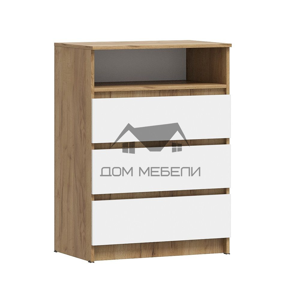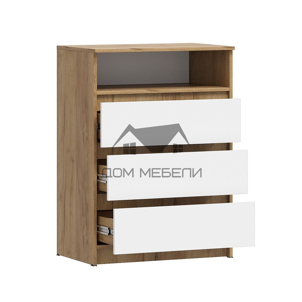 Комод Ламия КМ 062 гармонично будет смотреться в любом интерьере и станет незаменимым элементом. Три выдвижных ящика созданы для аккуратного хранения сложенной одежды, постельного и нижнего белья, различных аксессуаров, украшений и косметики. Сверху на комоде можно разместить несколько семейных фотографий, вазу или горшок с цветами, а также разнообразные предметы декора.