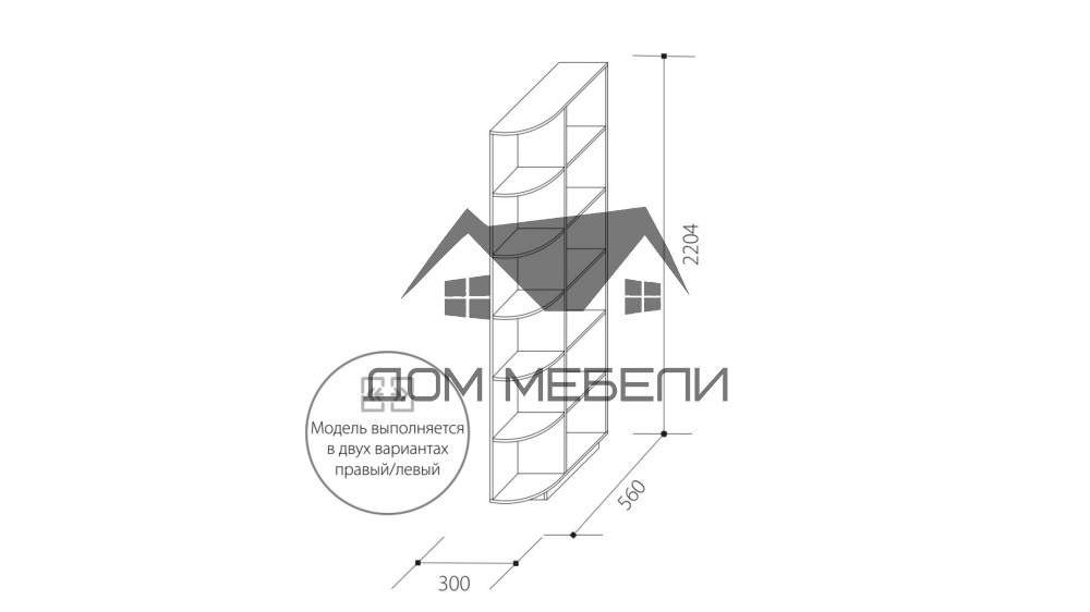 ДхВхШ: 300х2204х560 мм. Материал: фасад МДФ/корпус ЛДСП. Петли с доводчиком.