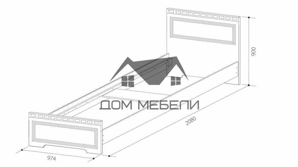 ДхВхШ: 2080х900х974 мм. Спальное место (матрац): 2000х900 мм. Кроватное основание Ладе либо ЛДСП.