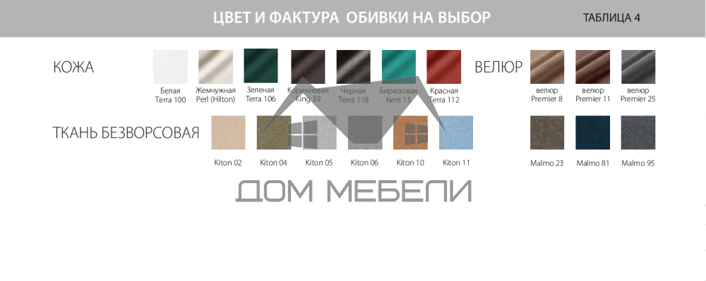 Цветовое решение — Таблица 4 Ткань/Кожа/Велюр.