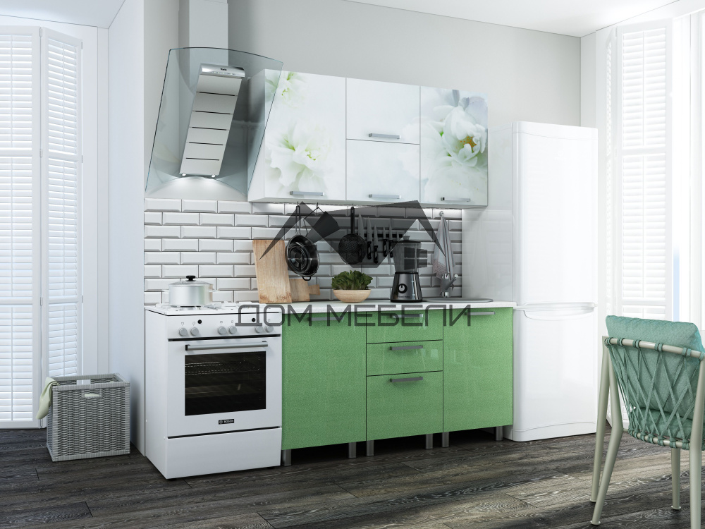 Комплект кухни Бьянка зеленый 1,5 м