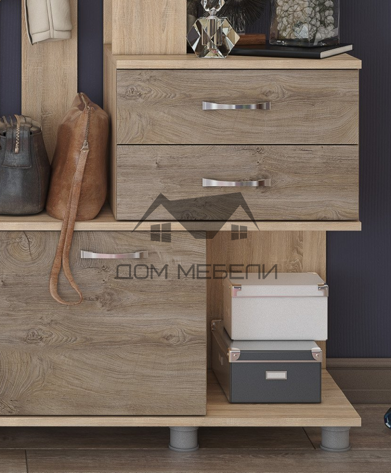 Стильное цветовое исполнение Многофункциональная центральная секция Фасады — ЛДСП «Дуб Эндгрейн необработанный» имеет выраженную структуру натуральной древесины с трещинами и спилами. ЛДСП цвета «Ясень Анкор Светлый» — текстуру с глубоким тиснением Материал: ЛДСП Цвет: дуб эндгрейн/дуб сонома, венге цаво/ясень анкор светлый Размер: 1000*2150*390 (Ш*В*Г)