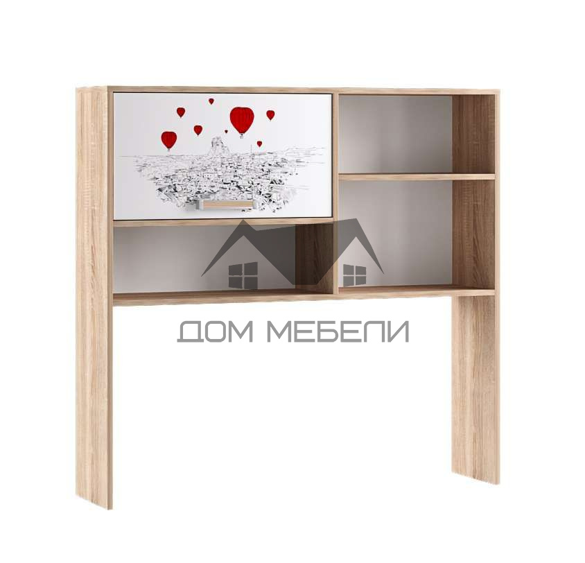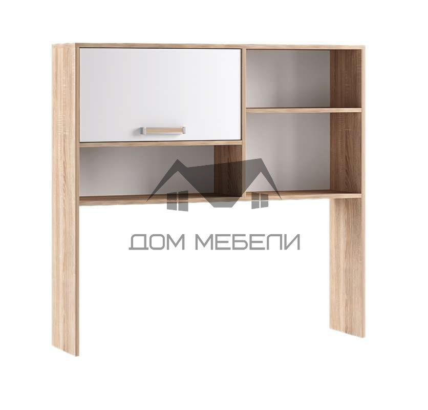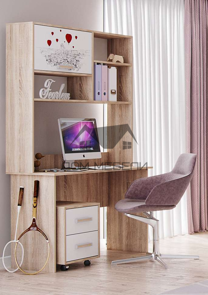 Открытые и закрытые полки над столом помогут удобно разместить книги и учебники.