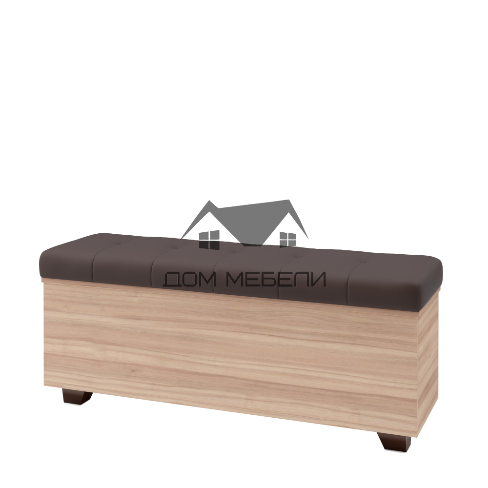 Мебель для спальни "Капри" выполнена в ЛДСП Дуб Рокпайл, контрастные вставки-из ЛДСП Арабика. Современное сочетание контрастных декоров дополнено эффектными опорами и ручками из натурального дерева. Размер: 1200*456*350 (Ш*В*Г)
