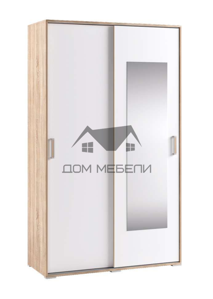 Вместительный двухдверный шкаф-купе Бланка - оснащен зеркалом, штангой и полками.