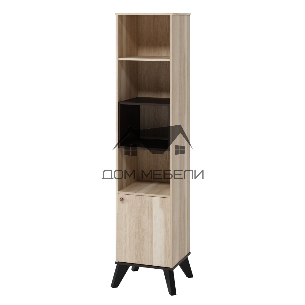 Нео-современная комната для молодежи. С Нео можно создать самый смелый, изысканный и неординарный интерьер. Модель выполнена в комбинации двух цветов ЛДСП 16 мм Дуб Рокпайл и Арабика. Фасады декорированы стильным рисунком, нанесенным с помощью УФ печати. Опоры из натурального дерева дополняют стильный образ мебели Нео. Размер: 515 x 2024 x 497 (Ш*В*Г)