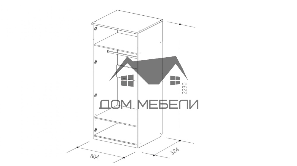 ДхВхШ: 804х2230х584 мм. Материал: фасад МДФ/корпус ЛДСП. Петли без доводчика. Внутри шкафа штанга.
