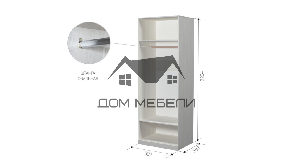 ДхВхШ: 802х2204х583 мм Материал: фасад МДФ/корпус ЛДСП Петли с доводчиком. Внутри шкафа большая штанга.