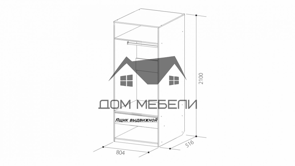 ДхВхШ: 804х2100х516 мм. Материал: фасад ЛДСП/корпус ЛДСП. Внутри шкафа штанга и ящик выдвижной (направляющие полного выдвижения).