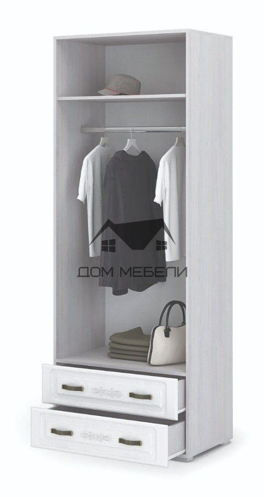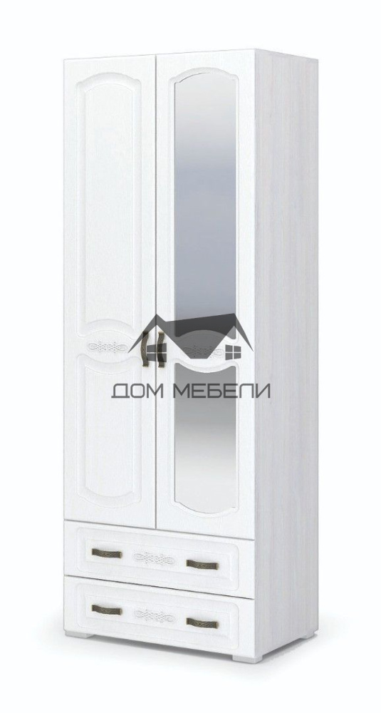 Шкаф 2-створчатый Медина – компактный и при этом вместительный вариант для интерьера в классическом стиле. Фасады модели украшены фигурной фрезеровкой и витиеватыми виньетками. Белый цвет корпусов и фасадов в сочетании с подобной отделкой несут чувство комфорта и уюта, облегчают конструкции и добавляют света в помещении. Конструкция шкафа предусматривает наличие просторного отделения для вешалок-плечиков и двух больших выдвижных ящиков для максимально удобной организации хранения вещей. Большое зеркало создает дополнительное удобство в использовании. Шкаф Медина будет отлично смотреться как в спальне, так и в прихожей комнате.