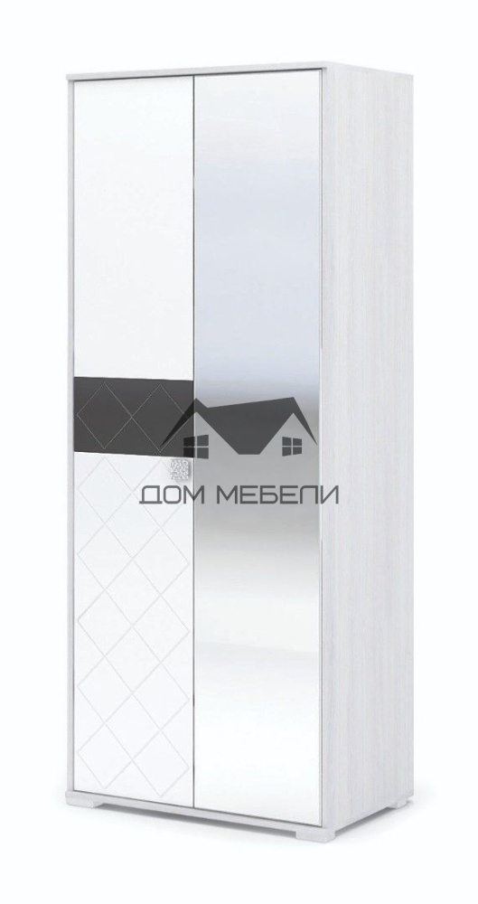 Шкаф 2-створчатый Сальма привлекает внимание своим необычным дизайном, но при этом выглядит солидно и будет уместен в интерьере гостиной, прихожей, спальной или детской комнаты. Белый глянцевый фасад в сочетании с геометричной отделкой, лаконичной контрастной вставкой и стильной ручкой позволят использовать в дизайне спальни любые яркие материалы, а также занять достойное место как в светлом, так и в темном интерьере спального помещения. Правая дверца содержит большое зеркальное полотно, что придает шкафу оригинальный вид и расширяет пространство в помещении.