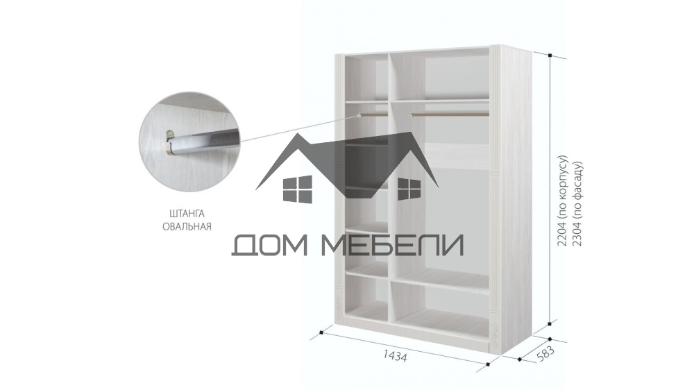 ДхВхШ: 1434х2304х583 мм.