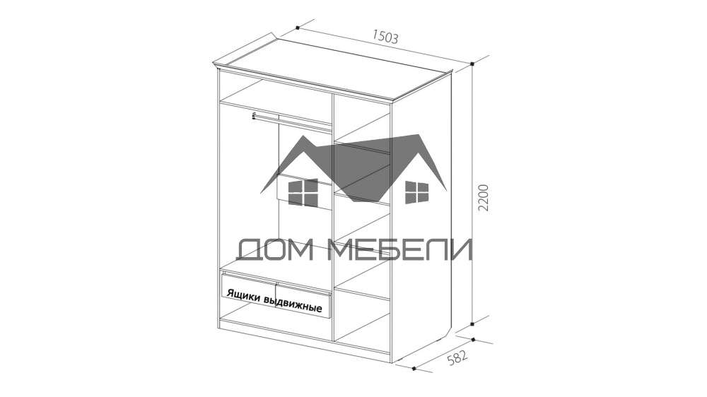 ДхВхШ: 1503х2200х582 мм (без учёта карниза).