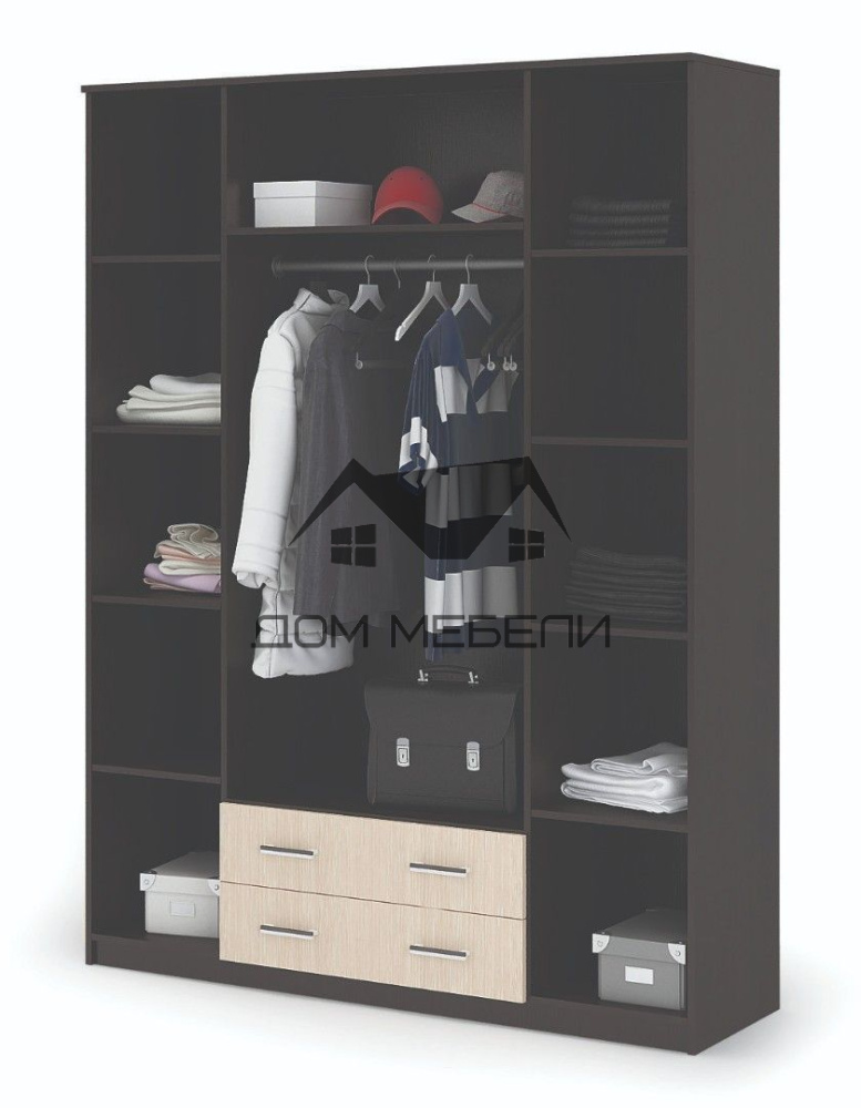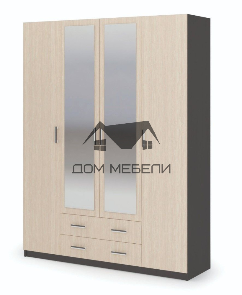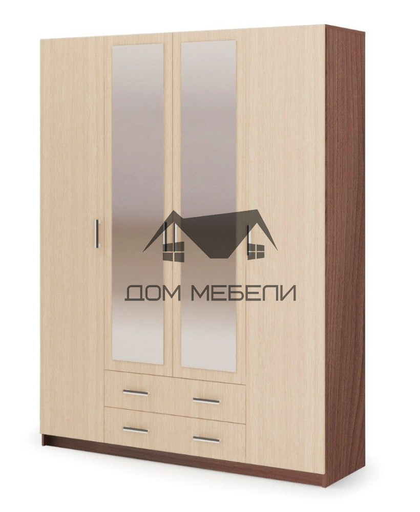 Шкаф 4-створчатый Гармония – выполнен в классическом стиле и имеет гармоничный дизайн в сочетании с прочностью и функциональностью, что делает его незаменимым элементом интерьера. Центральные фасады шкафа содержат большие зеркальные полотна, что придает ему оригинальный вид и расширяет пространство в помещении. Внутреннее наполнение представлено многочисленными полками разных размеров и большим отделом со штангой. Помимо этого, шкаф оснащен двумя ящиками с качественным выдвижным механизмом, обеспечивающим тихий ход и удобную эксплуатацию. Этот шкаф будет отлично смотреться как в спальне, так и в прихожей, а универсальная расцветка позволит разместить его практически в любом интерьере.