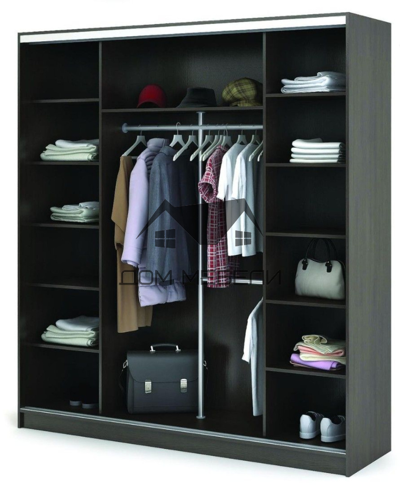 Шкаф Квадро – практичный, удобный в эксплуатации, со строгим и элегантным внешним видом, обеспечит хранение вещей вашего гардероба и впишется в интерьер современной квартиры. Две центральные зеркальные створки открывают отсек со штангой для хранения верхней одежды. Над ним расположена полка для головных уборов. Внизу – выдвижные ящики, которые можно использовать для нижнего белья, чулочно-носочных изделий. По обе стороны от центра находятся вместительные глубокие полки.