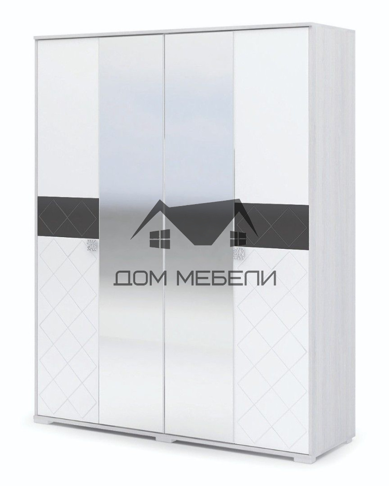 Шкаф 4-створчатый Сальма привлекает внимание своим необычным дизайном, но при этом выглядит солидно и будет уместен в интерьере гостиной, прихожей, спальной или детской комнаты. Белые глянцевые фасады в сочетании с геометричной отделкой, лаконичными контрастными вставками и стильными ручками позволят использовать в дизайне спальни любые яркие материалы, а также занять достойное место как в светлом, так и в темном интерьере спального помещения. Центральные фасады модели содержат большие зеркальные полотна во весь рост, что придает шкафу оригинальный вид и расширяет пространство в помещении. Внутреннее наполнение представлено многочисленными полками разных размеров и отделом со штангой.