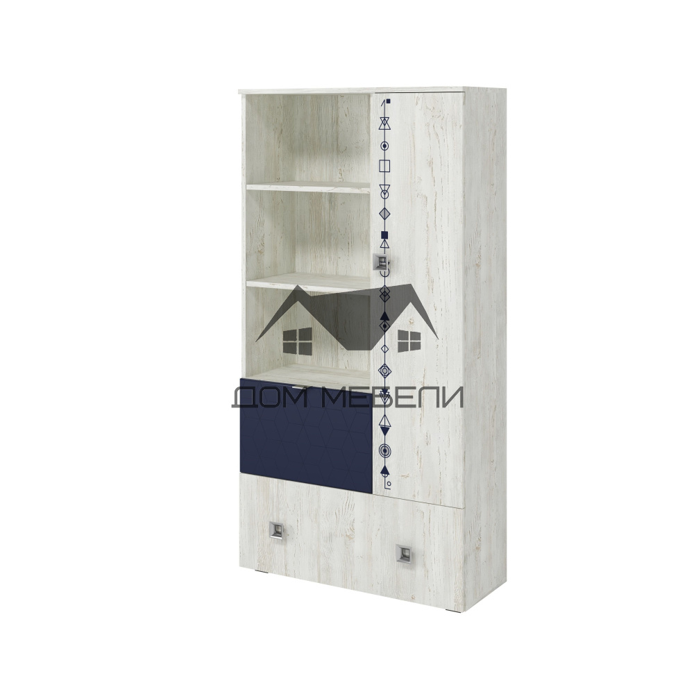 Модульная серия "Поло" - это удобная, комфортная и современная мебель для комнаты Ваших детей. Большой модельный ряд, три вида фасадов, разных тематик, эргономика и функциональность. Все корпуса серии выполнены из ЛДСП 16 мм Сосна Винтерберг. Фасады декорированы УФ печатью и цветными вставками из ЛДСП и МДФ. Современное прочтение комнаты для подростка любого пола можно найти в этой мебели. Преимущества модульной спальни - возможность купить модули по отдельности даже после приобретения базовой комплектации. Напольный, невысокий шкаф для книг с полками, распашной дверцей справа и выдвижными ящиками внизу. Размер: 800*1562*320 (Ш*В*Г)