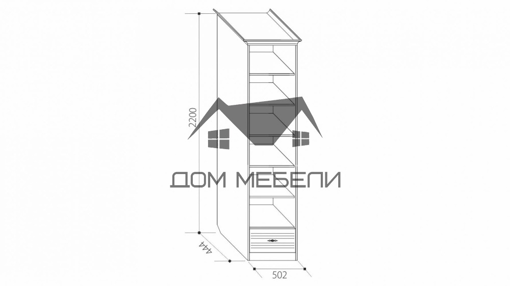 Размер (Ш*В*Г): 502*2200*444 Материал: фасад МДФ/корпус ЛДСП. Используются гнутые фасады. Цветовое решение: Итальянский Орех/Орех Направляющие полного выдвижения, петли с доводчиком.