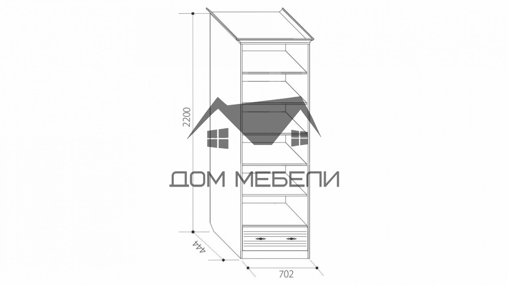 Размер (Ш*В*Г): 736*2200*465 Материал: фасад МДФ/корпус ЛДСП. Используются гнутые фасады. Цветовое решение: Итальянский Орех/Орех Направляющие полного выдвижения, петли с доводчиком.