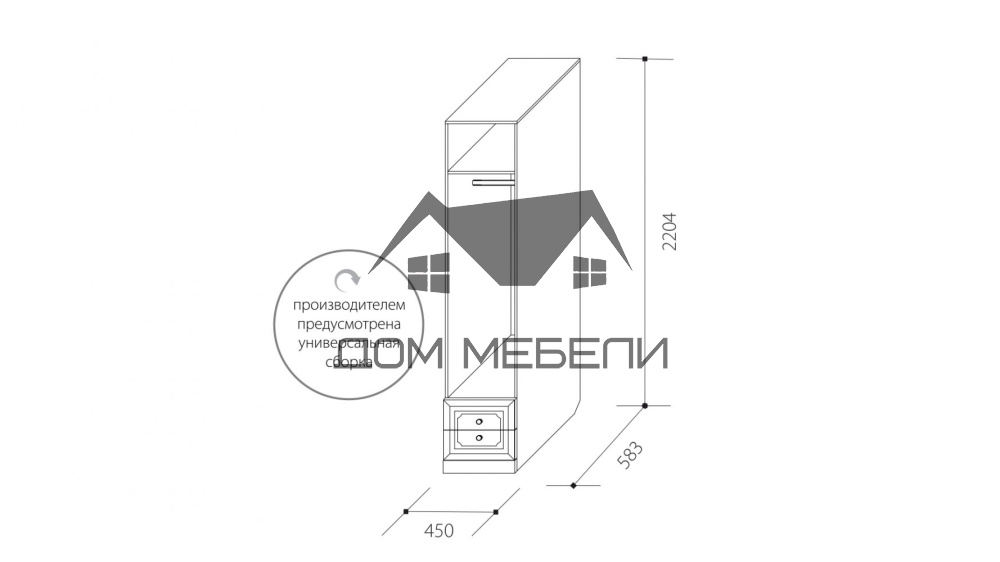 ДхВхШ: 450х2204х583 мм. Материал: фасад МДФ/корпус ЛДСП. Направляющие полного выдвижения, петли с доводчиком.