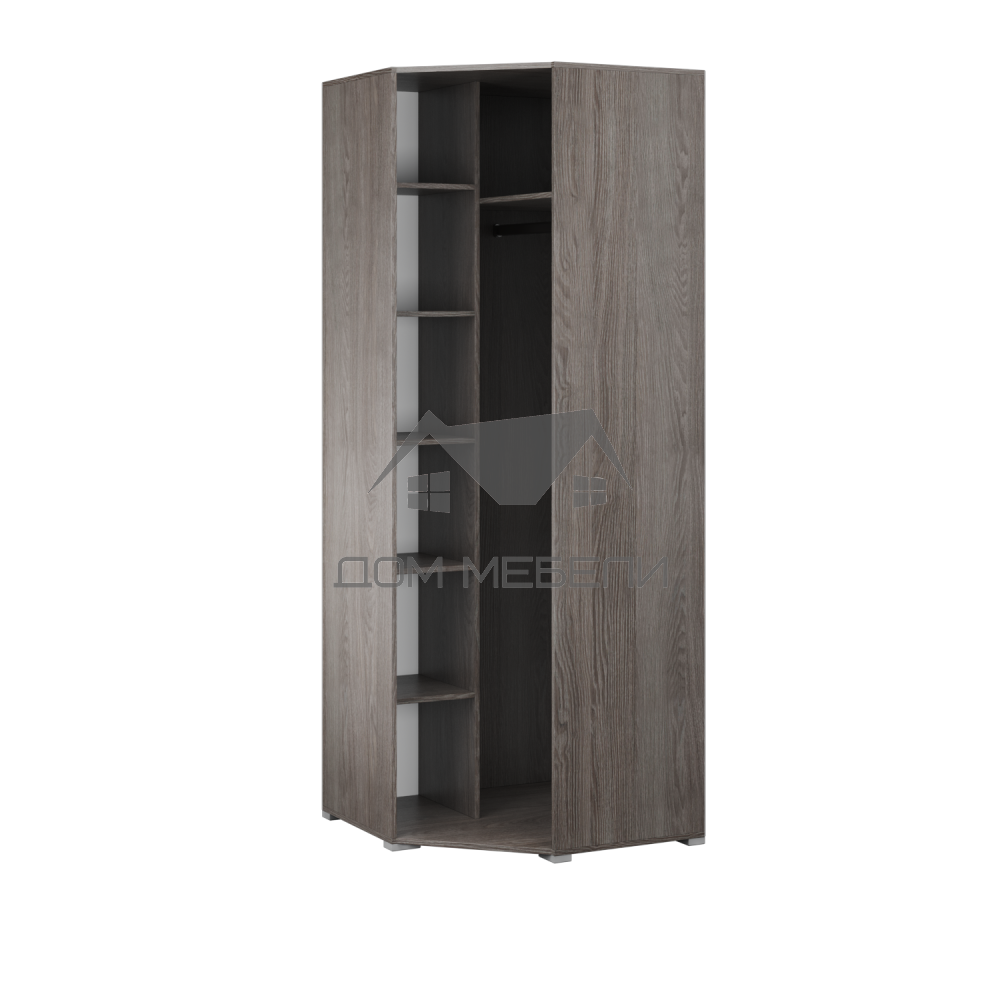 Шкаф угловой Теана безупречно впишется в интерьер уютной комнаты. За распашной дверью находится штанга для вешалок-плечиков, а антресольная и боковые полки пригодятся для размещения сложенной одежды, белья и различных аксессуаров. Размеры: 2200х820(480)х820(480) (ВхШхГ)