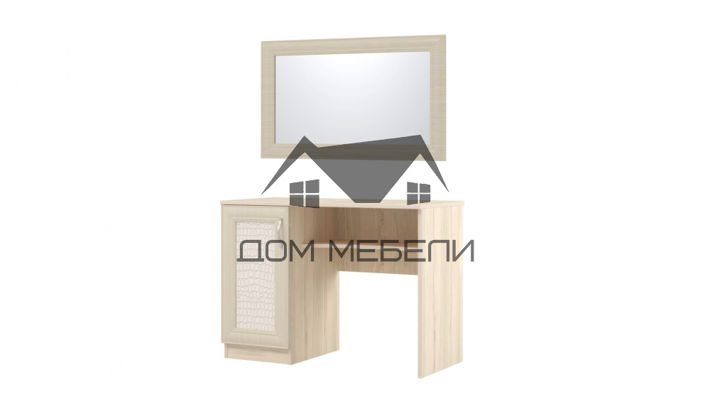 Стол туалетный ДхВхШ: 930х690х386 мм. Зеркало ДхВ: 930х550 мм. Материал: рамочный профиль МДФ+иск.кожа/корпус ЛДСП. Петли с доводчиком.